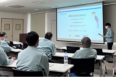 現場には多くの危険が潜んでいますので、労働者の安全意識を高めるためのプログラムを組み込んで実施しています。